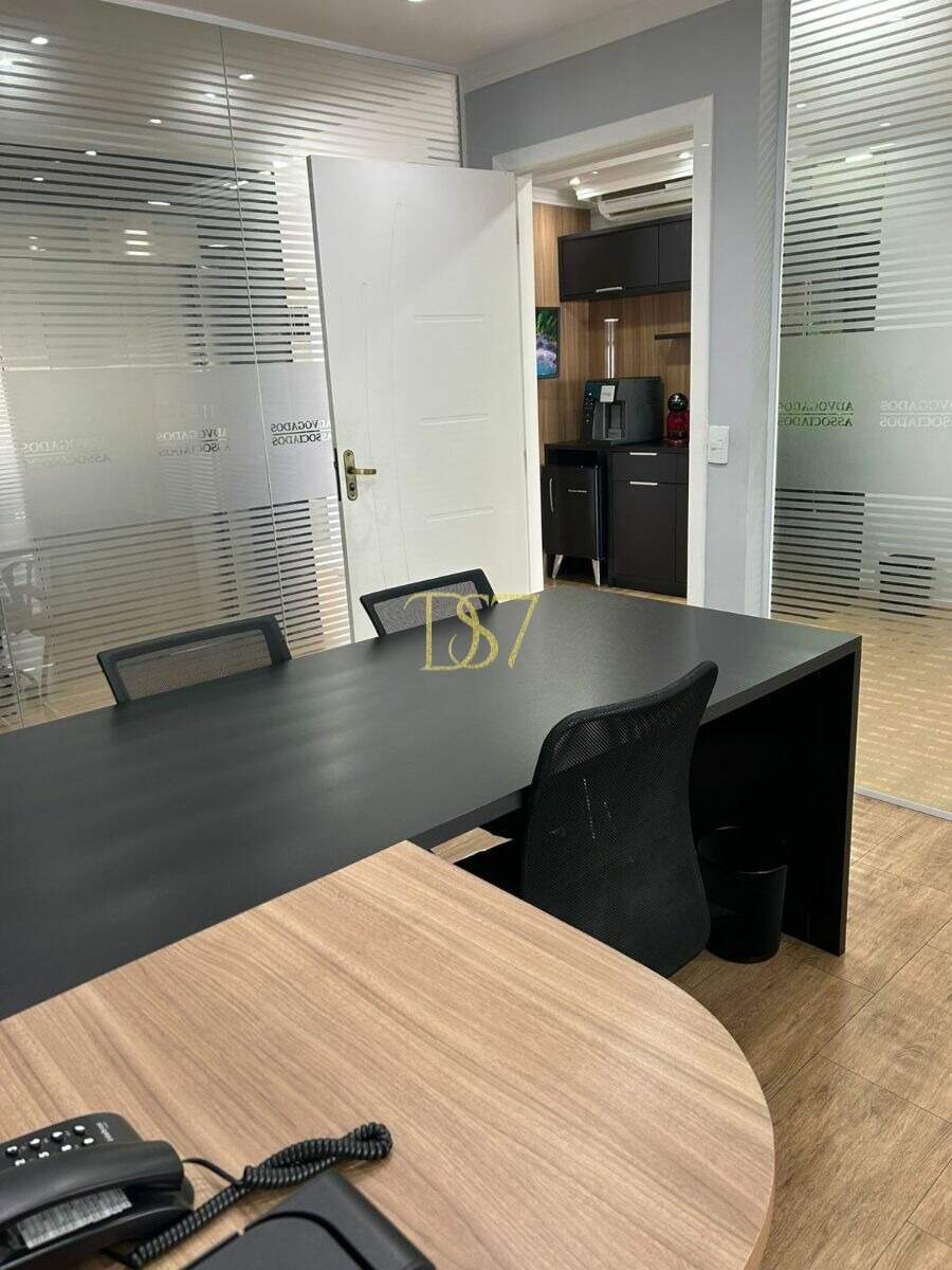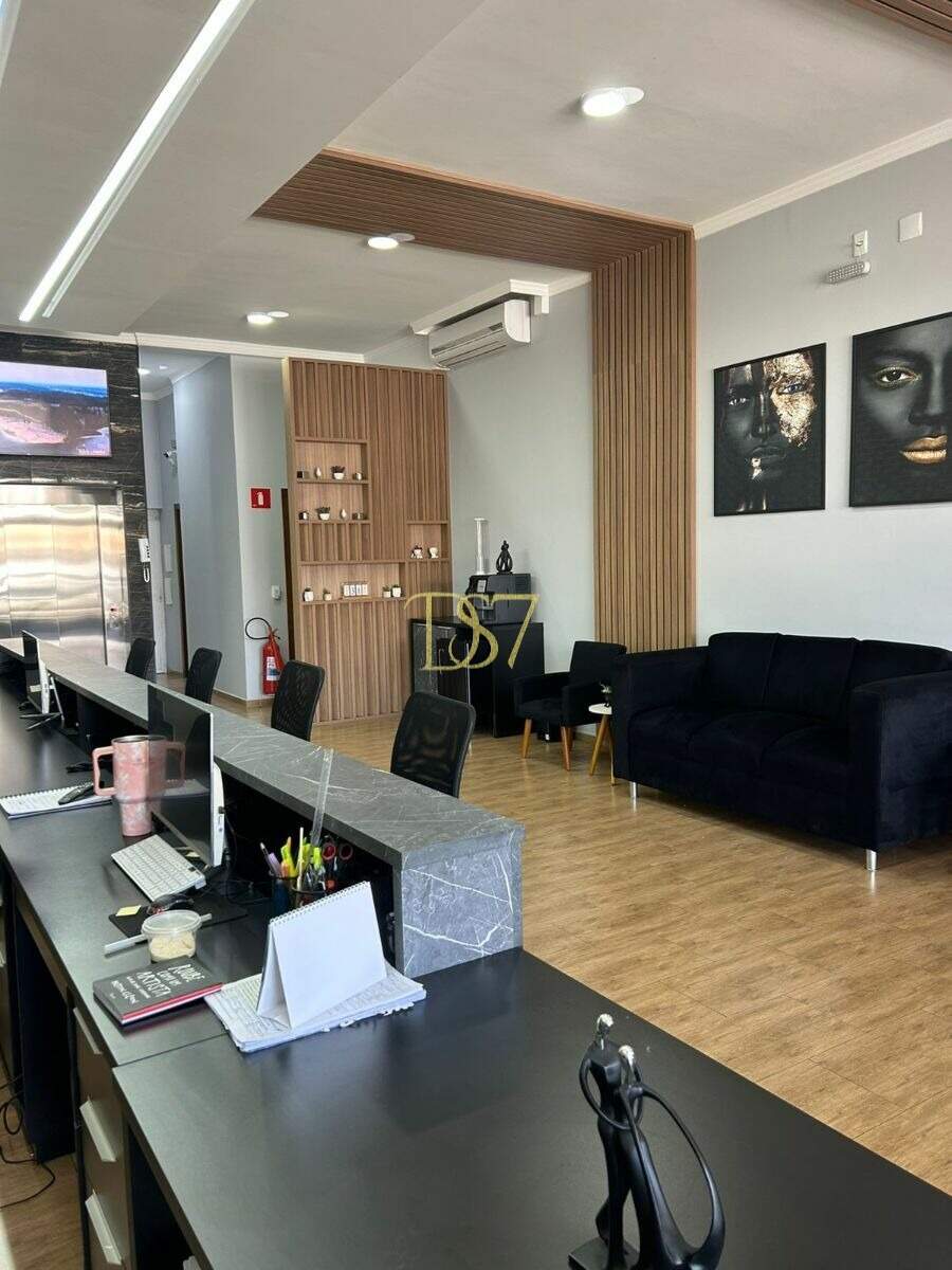 6 salas individuais, 3 salas de reunião, 8 banheiros, 3 salas de espera com recepção nos andares, recepção principal para até 4 secretárias, ar-condicionado em todas as salas, m Móveis planejados de alto padrão, espaço café em todos os andares.