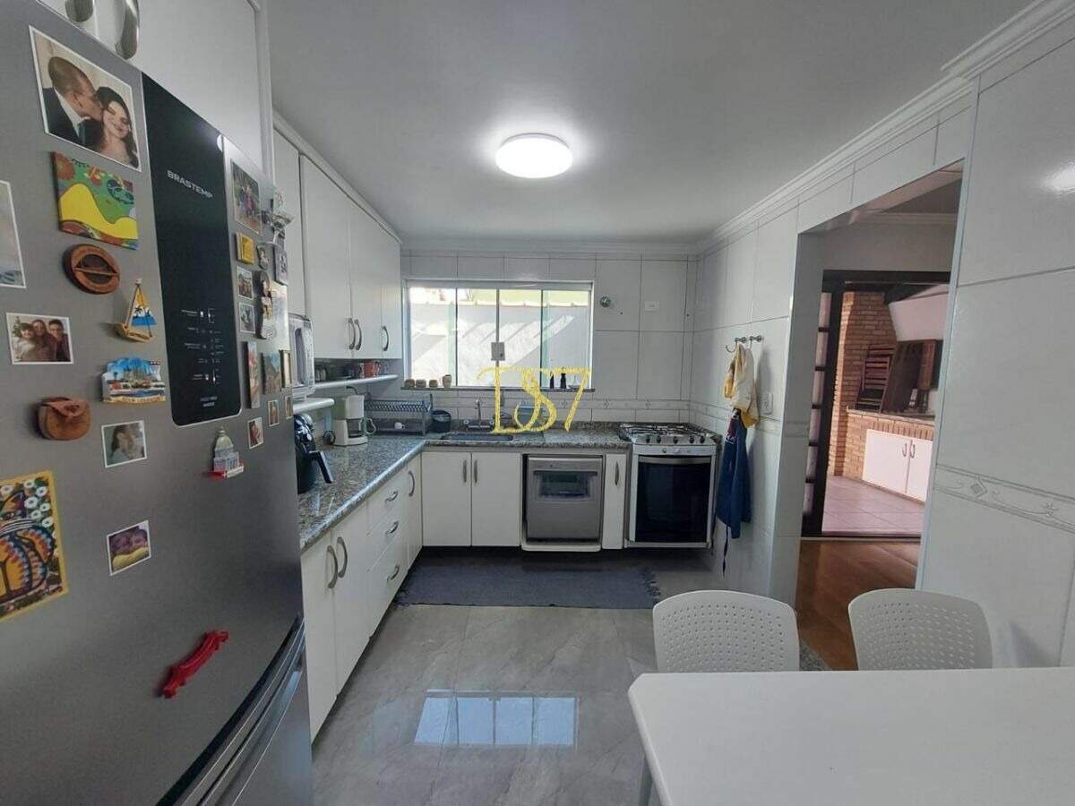 Com 3 quartos sendo 1 suíte, sala 2 ambientes com lareira, cozinha bem ampla, lavabo, banheiros, quintal com churrasqueira, 3 vagas de garagem, 159m² de área útil.